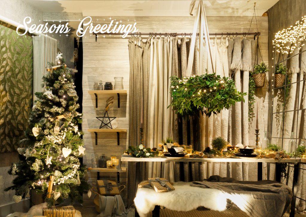 Our Christmas window display for 2018, designed and made by the Bryant Interiors team, is inspired by “Hygge” which is a Danish word used to acknowledge a feeling of comfort, contentment and well being. The fabrics displayed are by leading design brands such as Zinc Textile and Larsen. They exude interesting, natural textures and are all made of natural fibres such as linen and viscose. This warm, rustic, comfortable look is perfect for Winter time and can be easily achieved in your home, by just adding some cushions and throws in these interesting textures and furs (fake of course). The Bryant Interior Furnishings team wish you much “Hygge” in your home this Christmas.