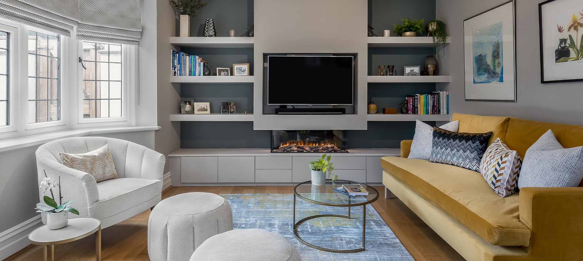 Styling: Contemporary, light and colourful featuring yellow.