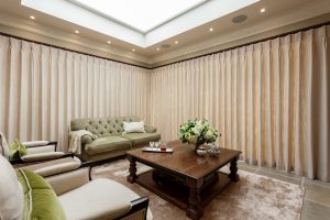 We provided all of the window dressings and soft furnishings. Working closely with Emma we were able to make to her brief and show case the stunning fabrics that she had selected. The team at Bryant Interior Furnishings supplied handmade roman blinds, upholstered furniture and pelmets, curtains and cushions. The window dressings all comprise of a first layer of sheer in the form of a roller blind, roman blind or sheer curtain and a second layer of sumptuous interlined curtains. Allowing the interiors and flooring stay protected from harmful UV rays whilst the curtains offer warmth and room darkening when needed.