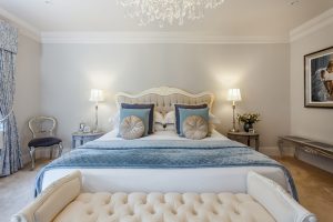 Apart from the Study and master dressing room, wallpaper has been excluded to allow for the many decadent mirrors, framed pieces of art and family photographs which adorn the walls. Emma chose each piece of furniture to complement each rooms’ individual needs. The furniture is ornate, traditional and impressive with many of the cabinets displaying more stunning accessories. Wherever you look your eyes will stumble upon something unique.